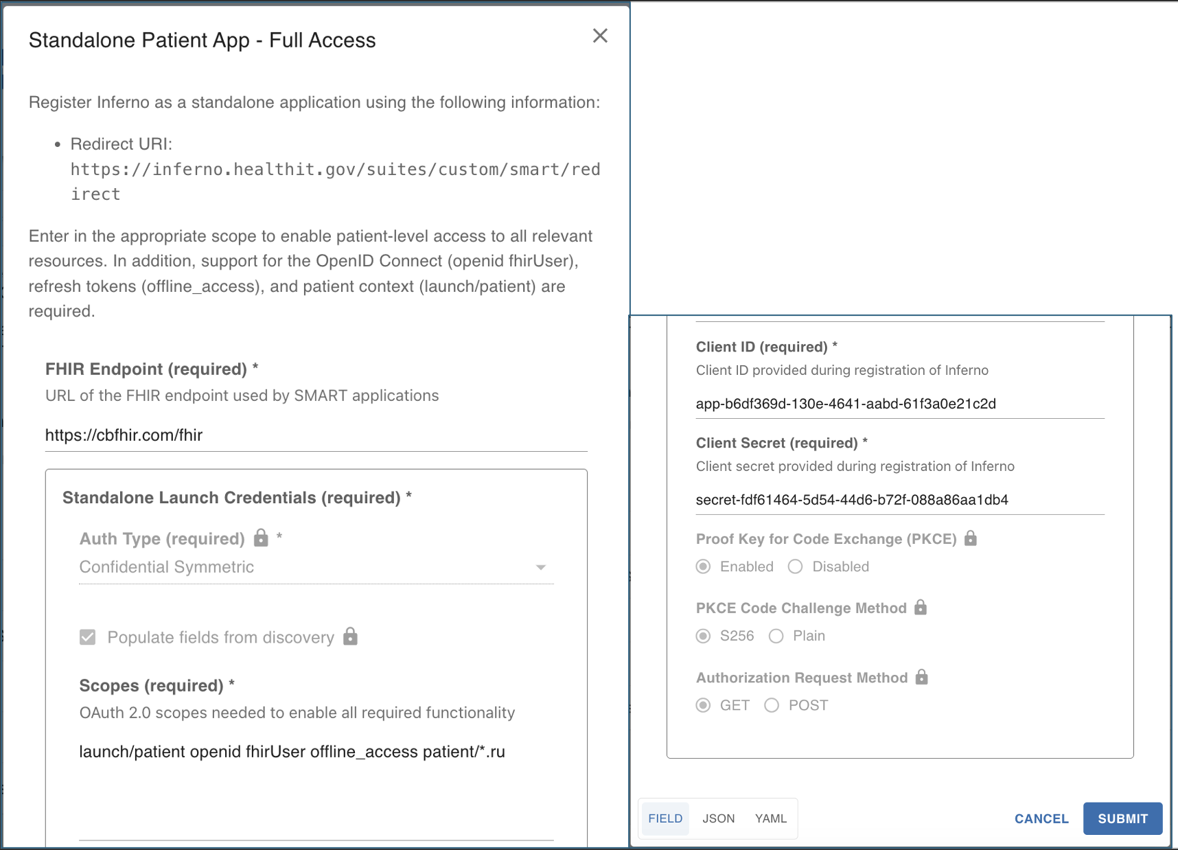 https://your-domain/fhir) - Required scopes (used by Inferno):